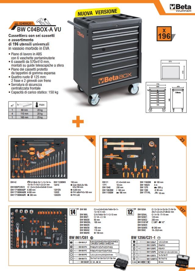 CASSETTIERA CON 6 CASSETTIE ASSORTIMENTO DI 196 UTENSILI
